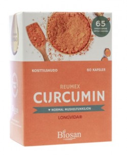 Biosan Reumex Curcumin inneholder den nye patenterte og dokumenterte Longvida® Curcumin, som har 65 ganger høyere biotilgjengelighet sammenlignet med vanlig curcumin.